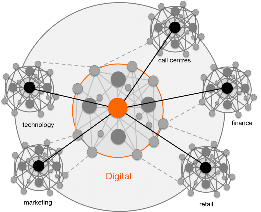 Most organisations still map their workforce on a traditional org chart with strict hierarchies and reporting lines. Both responsibility and accountability follow these ridged paths and inevitable create silos which constrain communication and collaboration. To make digital ‘work’ all of the silos need to open up and align to meet the transformation.